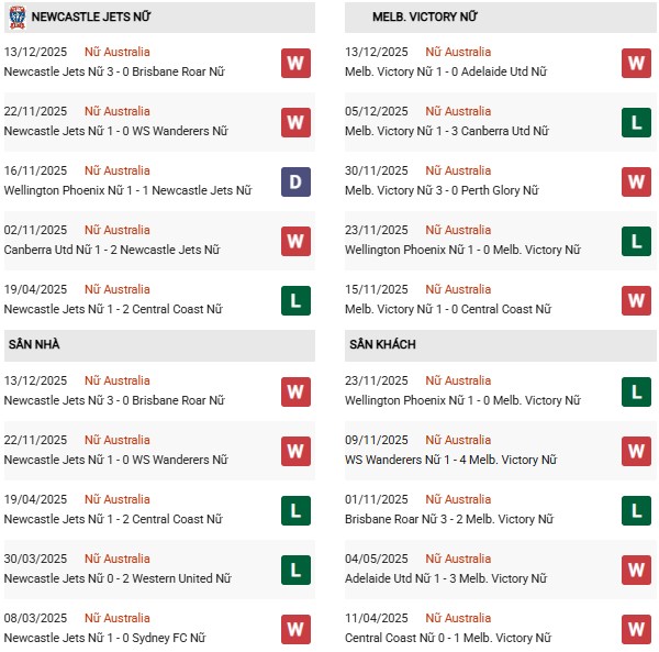 Thống kê phong độ Nữ Newcastle Jets vs Nữ Mel. Victory: