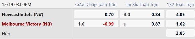 Thông tin tỷ lệ cược Nữ Newcastle Jets vs Nữ Mel. Victory: