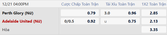 Thông tin tỷ lệ Nữ Perth Glory vs Nữ Adelaide: