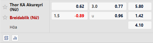Lần gần nhất tiếp đón nữ Breidabllik thuộc giải VĐQG nữ Iceland chứng kiến nữ Thor KA Akureyri thua với cách biệt 3 bàn. Nữ Thor KA Akureyri cũng thua kèo toàn bộ 4 trận sân nhà gần đây thuộc giải VĐQG nữ Iceland. Nữ Thor KA Akureyri rõ ràng khó trở thành phương án mang tới nhiều niềm tin.