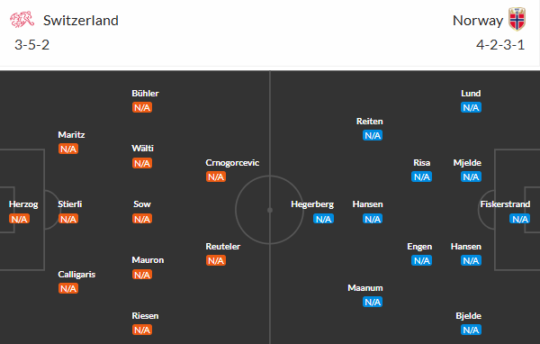 Đội hình dự kiến Nữ Thụy Sĩ vs Nữ Na Uy: