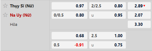Thông tin tỷ lệ kèo Nữ Thụy Sĩ vs Nữ Na Uy:
