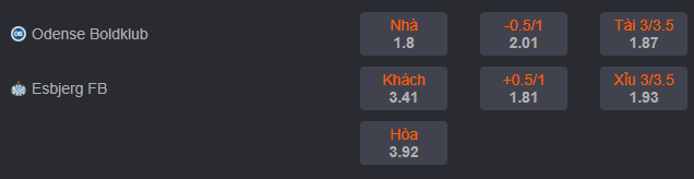 Thông tin tỷ lệ Odense vs Esbjerg FB: