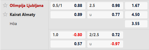 Thông tin tỷ lệ bóng đá Olimpija Ljubljana vs Kairat Almaty: