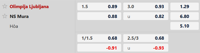 Thông tin tỷ lệ kèo Olimpija Ljubljana vs NS Mura: