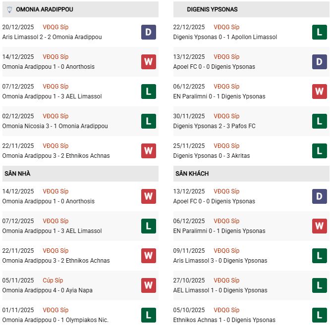 - Trên sân nhà, Omonia Aradippou thắng cả 5 trận trước Krasava ENY.