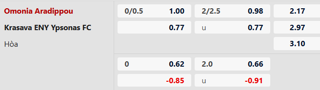 Soi kèo tài xỉu Omonia Aradippou vs Krasava ENY: