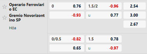 Operario thua kèo lần gần nhất chấp đội khách 1/4 trái thuộc giải Hạng 2 Brazil. Novorizontino toàn thắng kèo lẫn tỷ số 2 trận sân khách vừa qua thuộc khuôn khổ Serie B Brazil. So với Novorizontino thì Operario rõ ràng thất thế trong kèo chấp này.