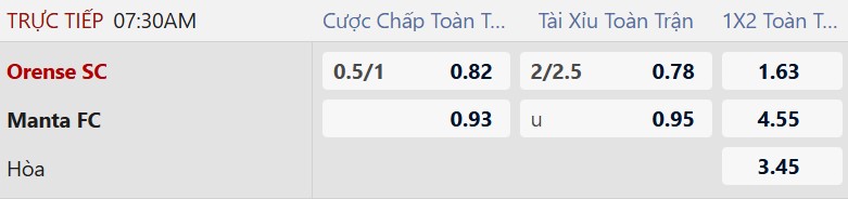 Thông tin tỷ lệ kèo Orense vs Manta: