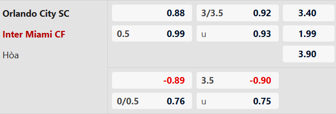 Thông tin tỷ lệ kèo Orlando City vs Inter Miami: