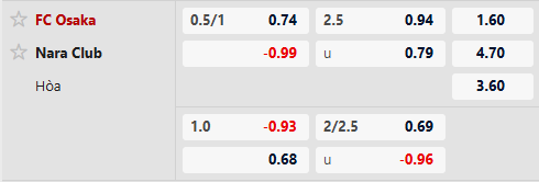 Thông tin tỷ lệ Osaka FC vs Nara Club: