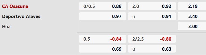 Thông tin tỷ lệ kèo Osasuna vs Alaves: