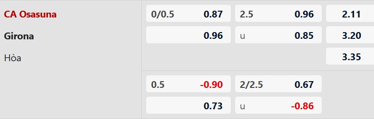 Thông tin tỷ lệ bóng đá Osasuna vs Girona: