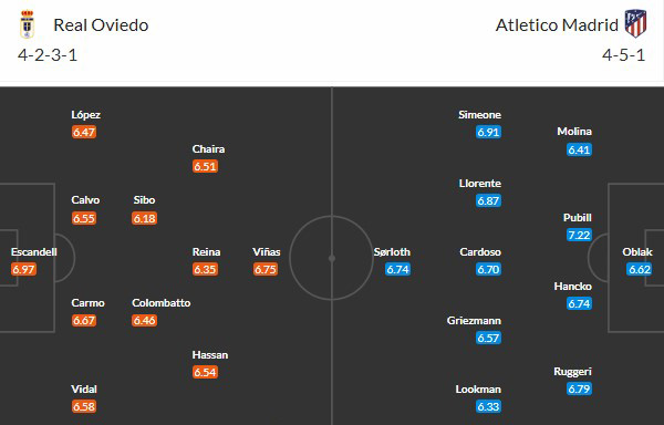 Đội hình dự kiến Oviedo vs Atletico Madrid: