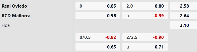 Thông tin tỷ lệ bóng đá Oviedo vs Mallorca: