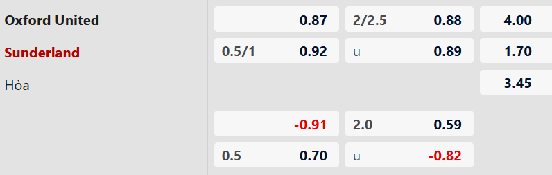 Lẻ bàn thắng: 6/10 trận gần nhất của Oxford có tổng bàn thắng không chia hết cho 2. Chưa hết, 5/7 trận vừa qua của Sunderland chứng kiến điều tương tự.