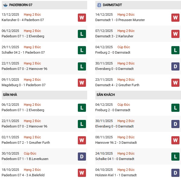 - Trên sân nhà, Paderborn thắng 2, thua 3 trước Darmstadt.