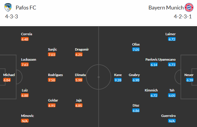Thông tin kèo bóng đá Pafos vs Bayern Munich: