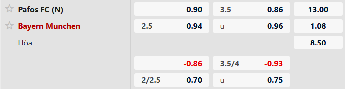 Soi kèo tài xỉu Pafos vs Bayern Munich: