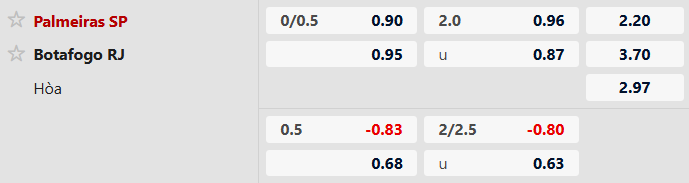 Thông tin tỷ lệ bóng đá Palmeiras vs Botafogo: