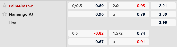 Thông tin tỷ lệ Palmeiras vs Flamengo: