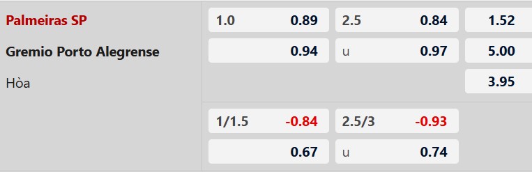 Nhận định kèo tài xỉu Palmeiras vs Gremio: