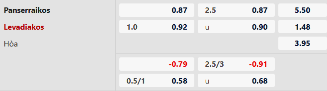 Thông tin tỷ lệ Panserraikos vs Levadiakos: