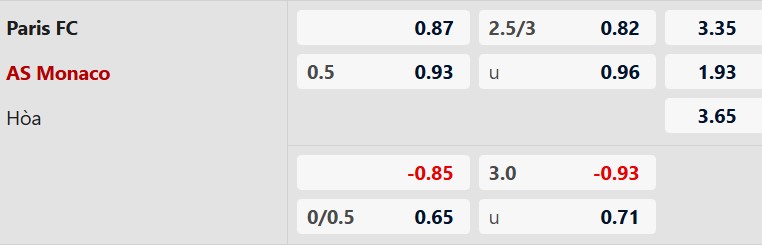 Mốc tài xỉu 2 3/4 cho thấy kỳ vọng về một trận đấu có bàn thắng. Monaco đang sở hữu hàng công hiệu quả khi ghi từ 2 bàn trở lên trong nhiều trận gần đây. Trong khi đó, Paris FC cũng thường xuyên ghi bàn trên sân nhà. Thế trận đôi công là hoàn toàn có thể xảy ra.