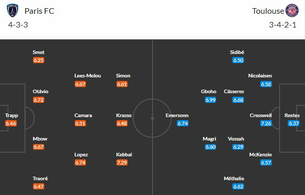 Đội hình dự kiến Paris FC vs Toulouse: