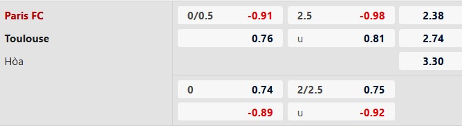 Thông tin tỷ lệ Paris FC vs Toulouse: