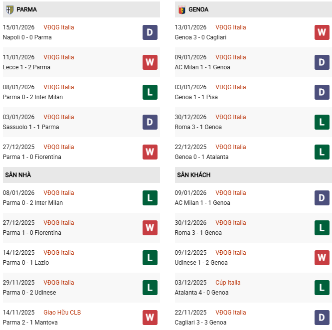 - Parma thắng 5, hòa 2, thua 3 trong 10 trận gặp Genoa gần đây.