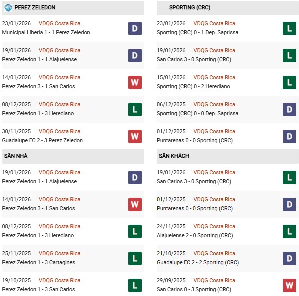 - Trên sân nhà, Perez Zeledon thắng 2, thua 6 trước Sporting FC.