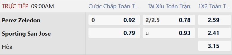 Thông tin tỷ lệ kèo Perez Zeledon vs Sporting FC: