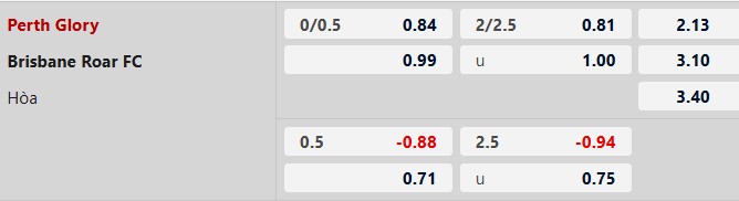 Thông tin tỷ lệ Perth Glory vs Brisbane Roar: