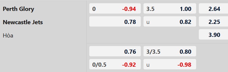 Thông tin tỷ lệ Perth Glory vs Newcastle Jets: