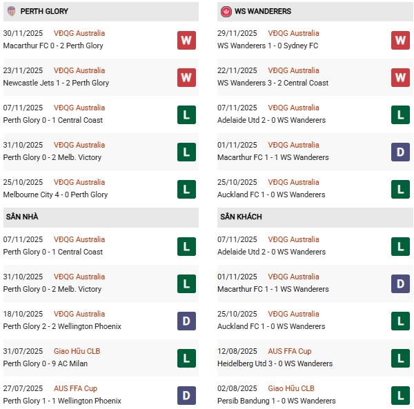 Thống kê phong độ Perth Glory vs Western Sydney: