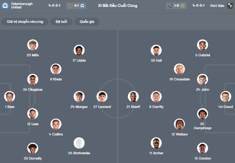 Ở phía đối diện, Port Vale đang lâm vào tình thế cực kỳ khó khăn khi xếp cuối bảng với chỉ 34 điểm. Khoảng cách 16 điểm so với vị trí an toàn khiến cơ hội trụ hạng của thầy trò Jon Brady gần như không còn, dù họ vẫn còn 3 trận chưa đấu.