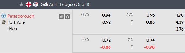 Thông tin tỷ lệ kèo Peterborough vs Port Vale: