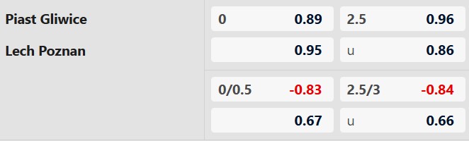 Thông tin tỷ lệ Piast Gliwice vs Lech Poznan: