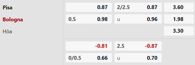 Nhận định kèo tài xỉu Pisa vs Bologna: