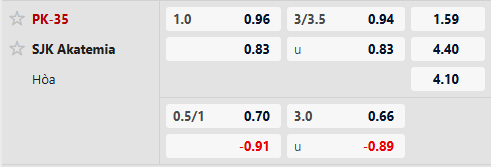 Thông tin tỷ lệ PK-35 vs SJK Akatemia: