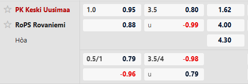 Thông tin tỷ lệ PKKU vs RoPS Rovaniemi: