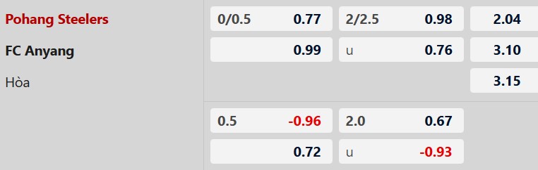 Soi kèo châu Á Pohang Steelers vs Anyang: