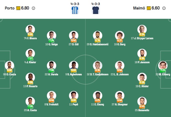 Đội hình dự kiến Porto vs Malmo: