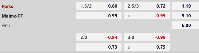 Porto được dự đoán sẽ thắng cách biệt hơn 1 bàn nhưng chưa chắc cuộc chơi đã kết thúc tưng bừng với trên 3 pha lập công. Thực tế trên sân nhà mùa này, đội bóng Bồ Đào Nha đã có đến 7/10 trận giữ sạch lưới song chỉ 1 hôm ghi quá 3 bàn. Ngược lại, Malmo chưa có trận sân khách nào ghi được bàn tại Europa League năm nay và 5/6 trận xa nhà mới đây của đội bóng này chỉ có tối đa 3 tình huống lưới rung.