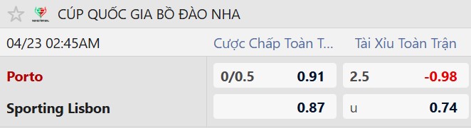 Thông tin tỷ lệ bóng đá Porto vs Sporting Lisbon: