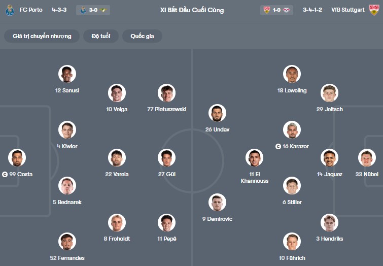 Nhận định kèo châu Á Porto vs Stuttgart: