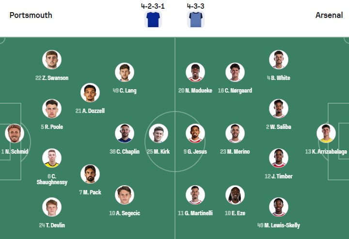 Đội hình dự kiến Portsmouth vs Arsenal: