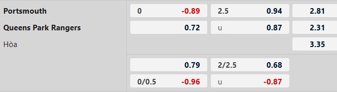 Thông tin tỷ lệ cược Portsmouth vs QPR: