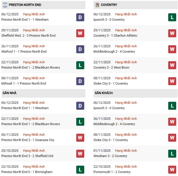 Trên sân khách, thầy trò HLV Lampard cũng chơi rất ấn tượng với 5 chiến thắng, 2 trận hòa và 3 thất bại trong 10 lần xa nhà gần nhất. Điểm mạnh lớn nhất của họ nằm ở khả năng tổ chức hàng phòng ngự chặt chẽ, trong khi hàng công duy trì sự hiệu quả cao trong các pha chuyển trạng thái. Coventry dù phải làm khách nhưng vẫn được đánh giá trên cơ nhờ sự ổn định và khả năng tạo khác biệt trước những đối thủ tầm khá như Preston.